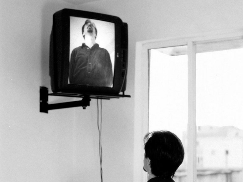Une mini-caméra est installée sur la pendule d’une comtoise en marche. Elle capte et retransmet en temps réel les images de l’espace et des gens qui le traversent.